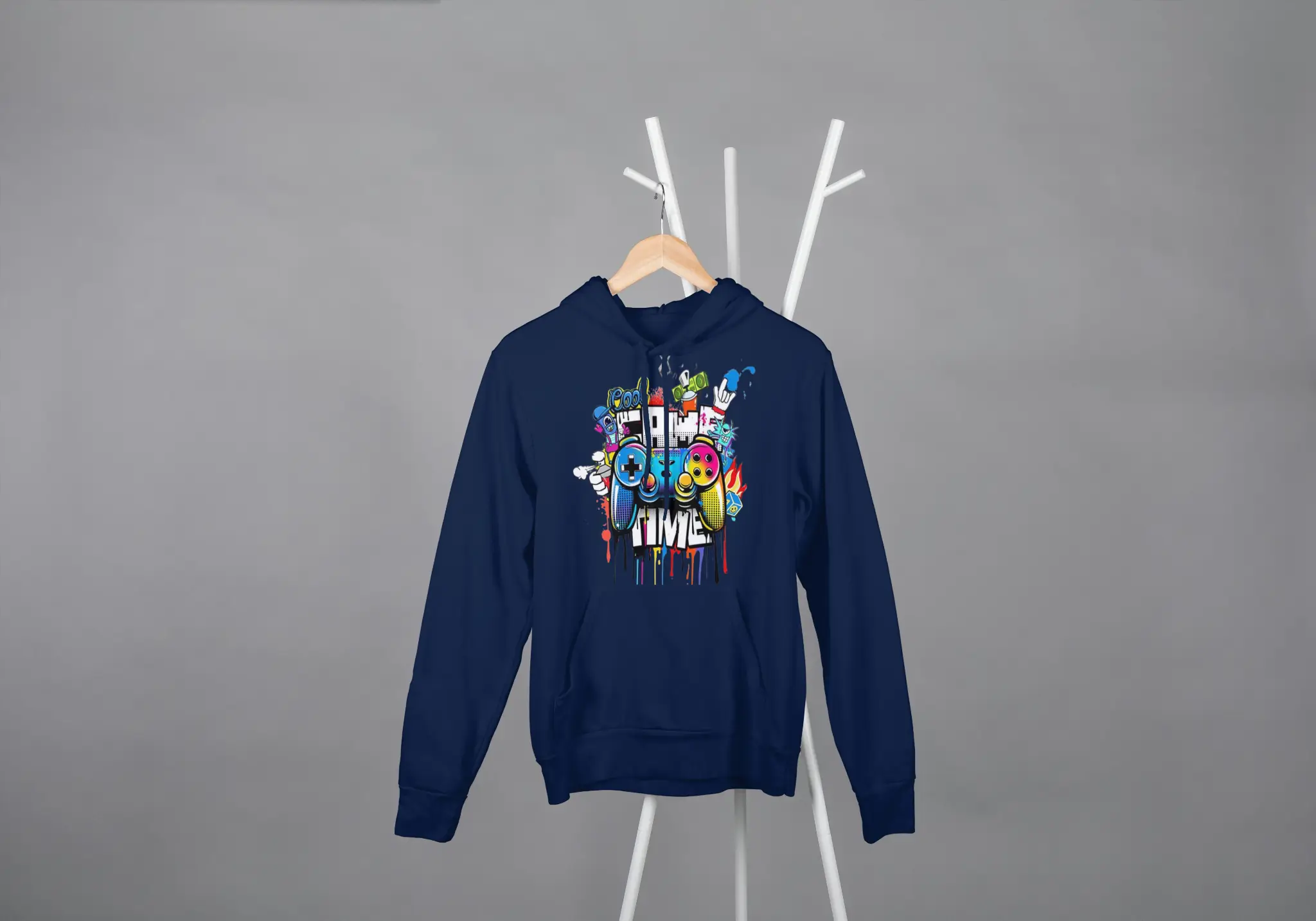 The Game Time Hoodie – Neon Gamer Edition delivers high-impact visuals with premium comfort. Featuring a vibrant graffiti-inspired controller graphic, this hoodie blends gaming culture with urban streetwear in the coolest way possible.