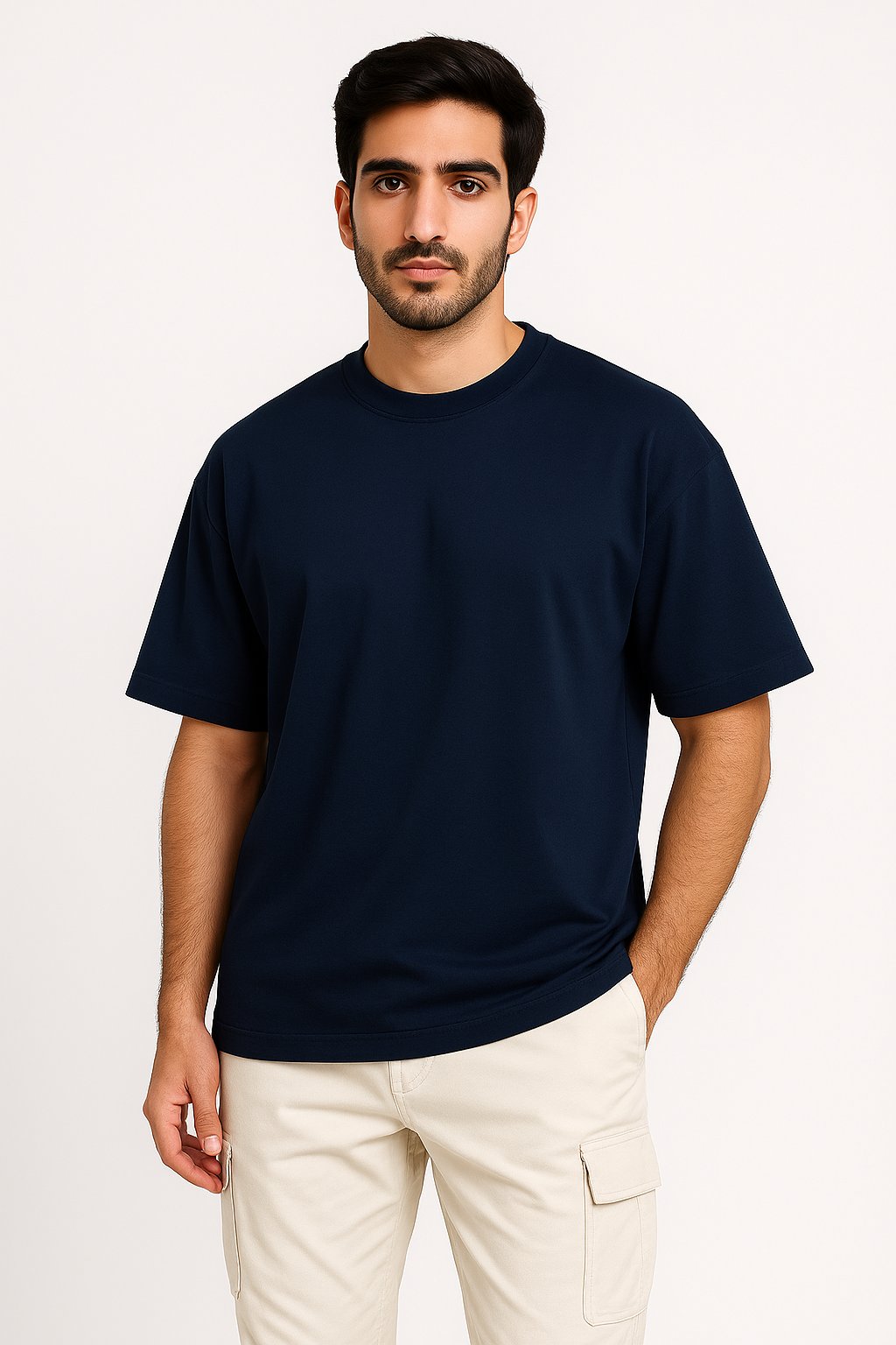 With its deep navy hue and drop-shoulder silhouette, this tee embodies versatility and confidence. Whether you’re layering it or wearing it solo, it’s a wardrobe essential made for every mood, every day.